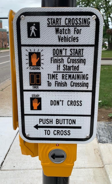 A few months ago, Greensburg and Latrobe, PA installed new traffic and crosswalk lights. When the signs for the crosswalks were first uncovered, I thought, “Wow, that seems complicated; or is it the inspiration for the sequel to Wash Hands, Save Lives?“