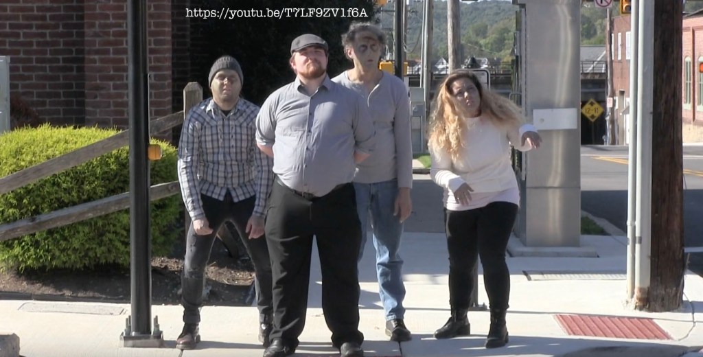 I gathered actors and filmed on the streets of Latrobe on a Sunday, usually a lazy traffic day, but this day there was constant traffic on the street. We paused so many times to let cars go, it became ridiculous.