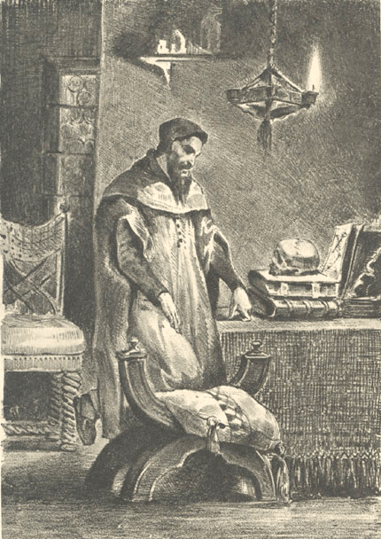Above: Faust turns to magic to transcend the confines of his high-vaulted, narrow Gothic chamber.