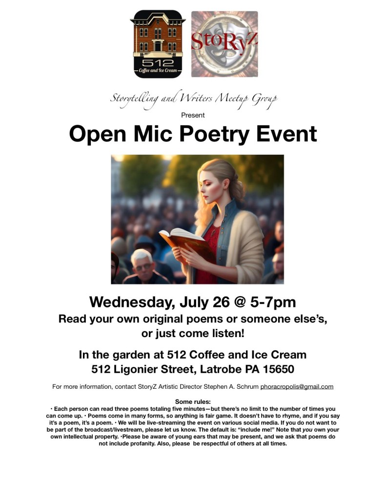 We always ended our theatre productions with a post-mortemdiscussion to talk about what worked and what didn’t. On 7/26/2023, StoryZ, our new theatre and performance group, hosted its inaugural offering, an Open Mic Poetry Event.