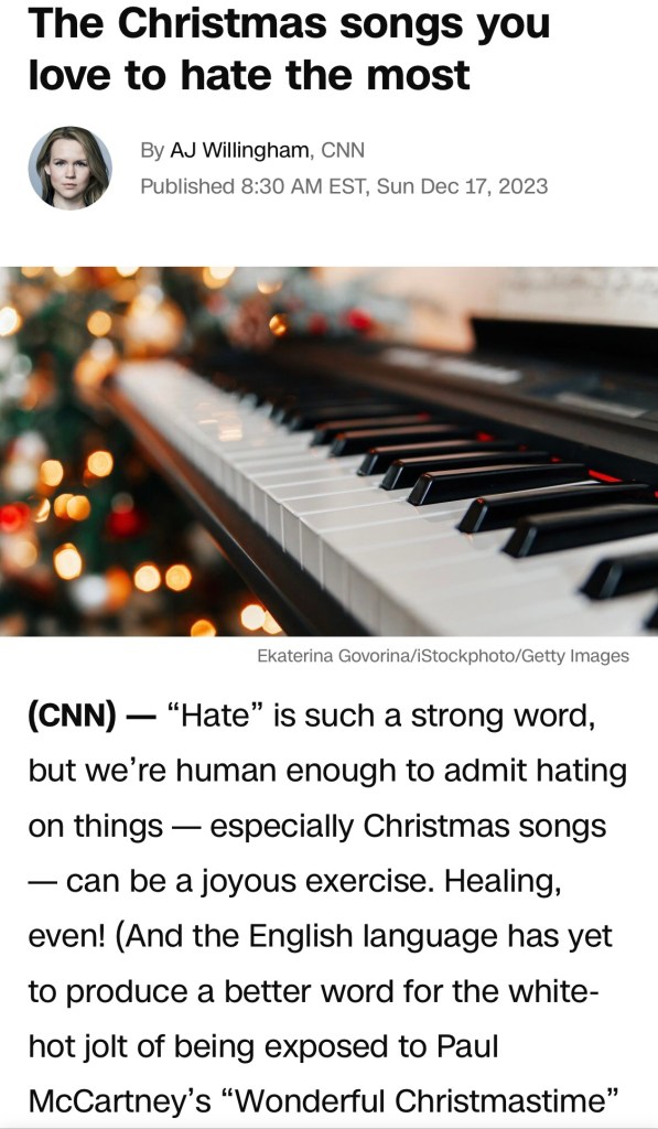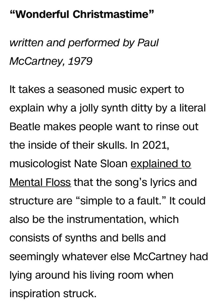 Of course, there is still one song I fight to get out of my head, like Brent resisting the mental attacks of the nuclear war survivors in Beneath the Planet of the Apes. And that is my least favorite Christmas song and, according to an article on CNN Online, I am not alone in my hatred for it: Paul McCartney’s “Wonderful Christmas.”