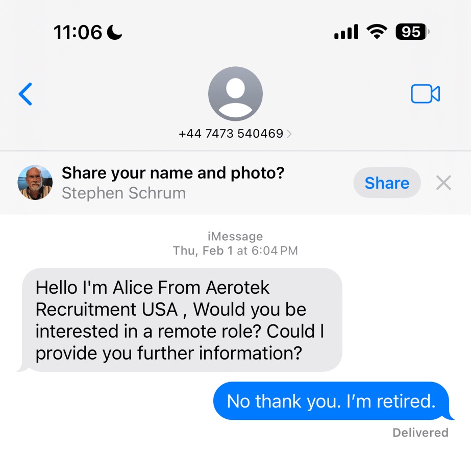 I’ve been saving some of the more absurd forays into text spamscam for a blog post, and I think it’s time to present the latest collection.