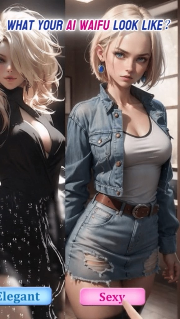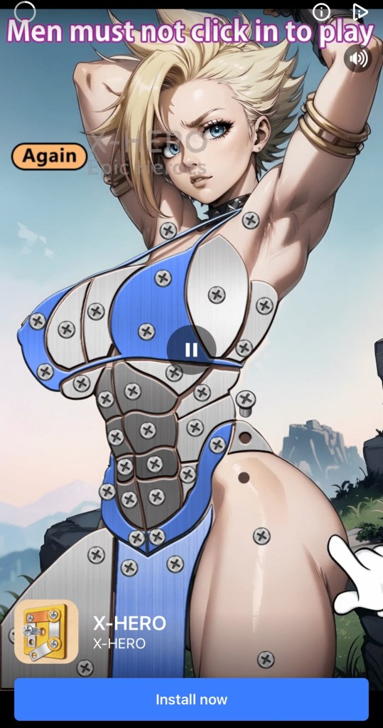 The mobile game ads seem to be getting odder and odder. I get that they’re pushing AI companions so lonely people can date HER. Or one version of her…