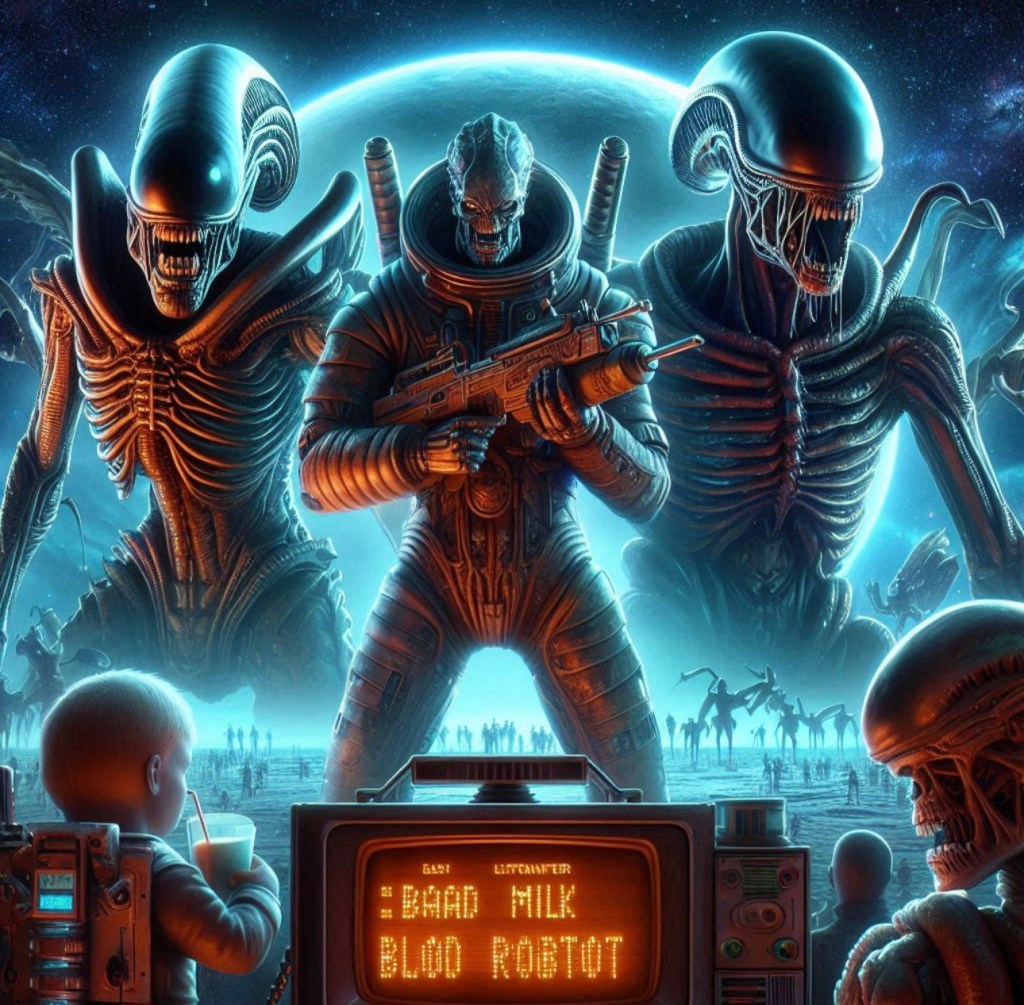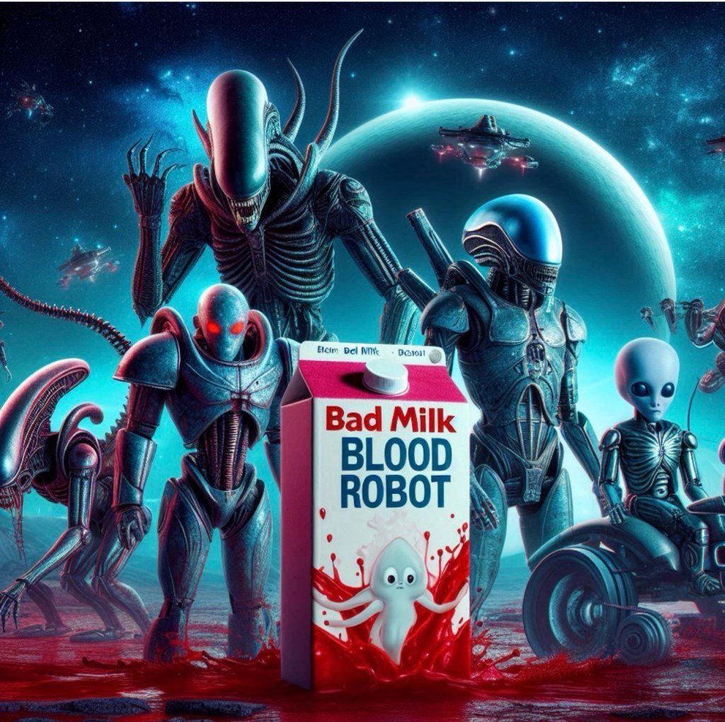 The description inspired me to create the movie poster for “Bad Milk Blood Robot” because, well, that phrase is just too perfect. I have been using fotor.com but the results have been a bit lame lately.