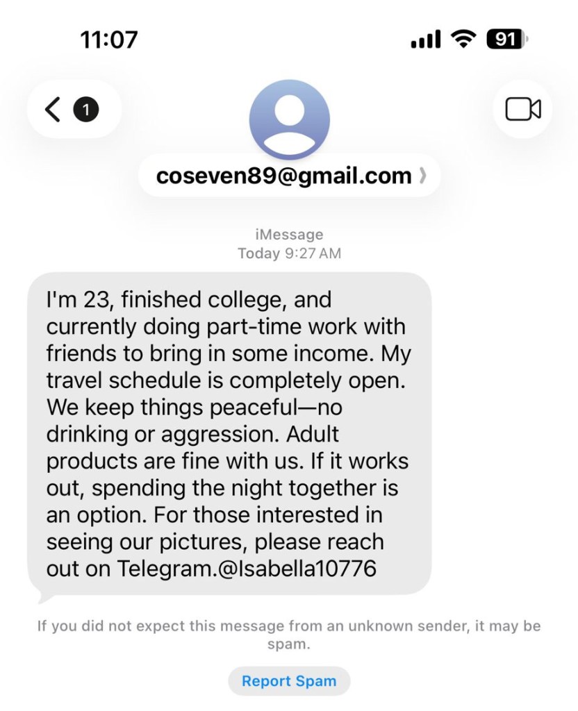 This is a new one. I’ve gotten it four times now. The first two came days apart but these showed up in my messages list one above the other.